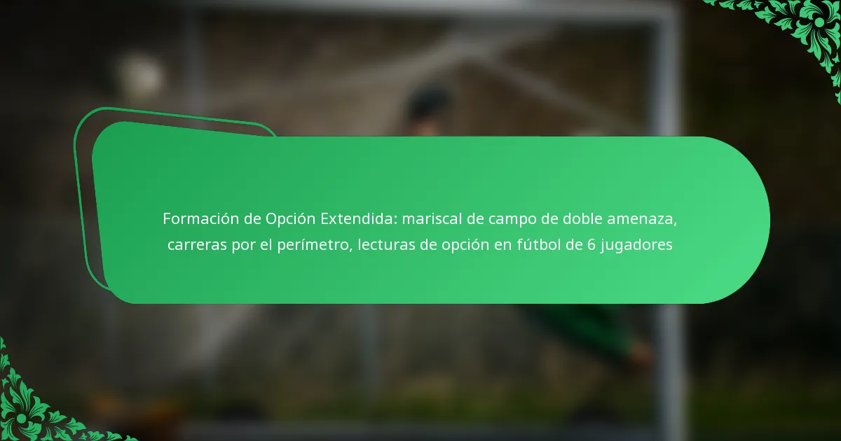 Un mariscal de campo de doble amenaza en el sistema de opción extendida es un jugador capaz de pasar y correr de manera efectiva. Esta versatilidad les permite explotar las defensas tomando decisiones rápidas basadas en la jugada que se desarrolla, mejorando la dinámica ofensiva en el fútbol de 6 jugadores.